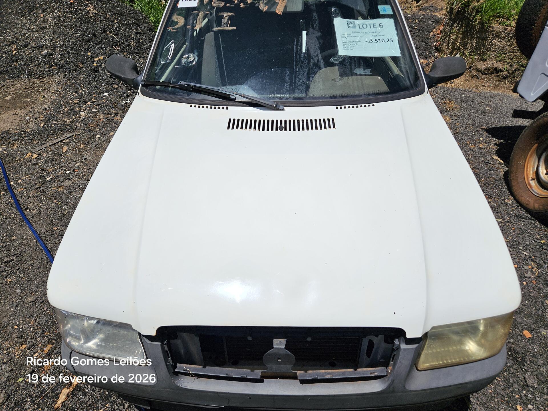 Lote 006 - Recuperável - AUTOMÓVEL - FIAT/UNO MILLE FIRE FLEX - PLACA:ANL3529 – CHASSI 9BD15802764797528 – ANO 06/06 – COMBUSTÍVEL A/G – COR BRANCA – PROPRIETARIO SEAP – RENAVAM 875753981