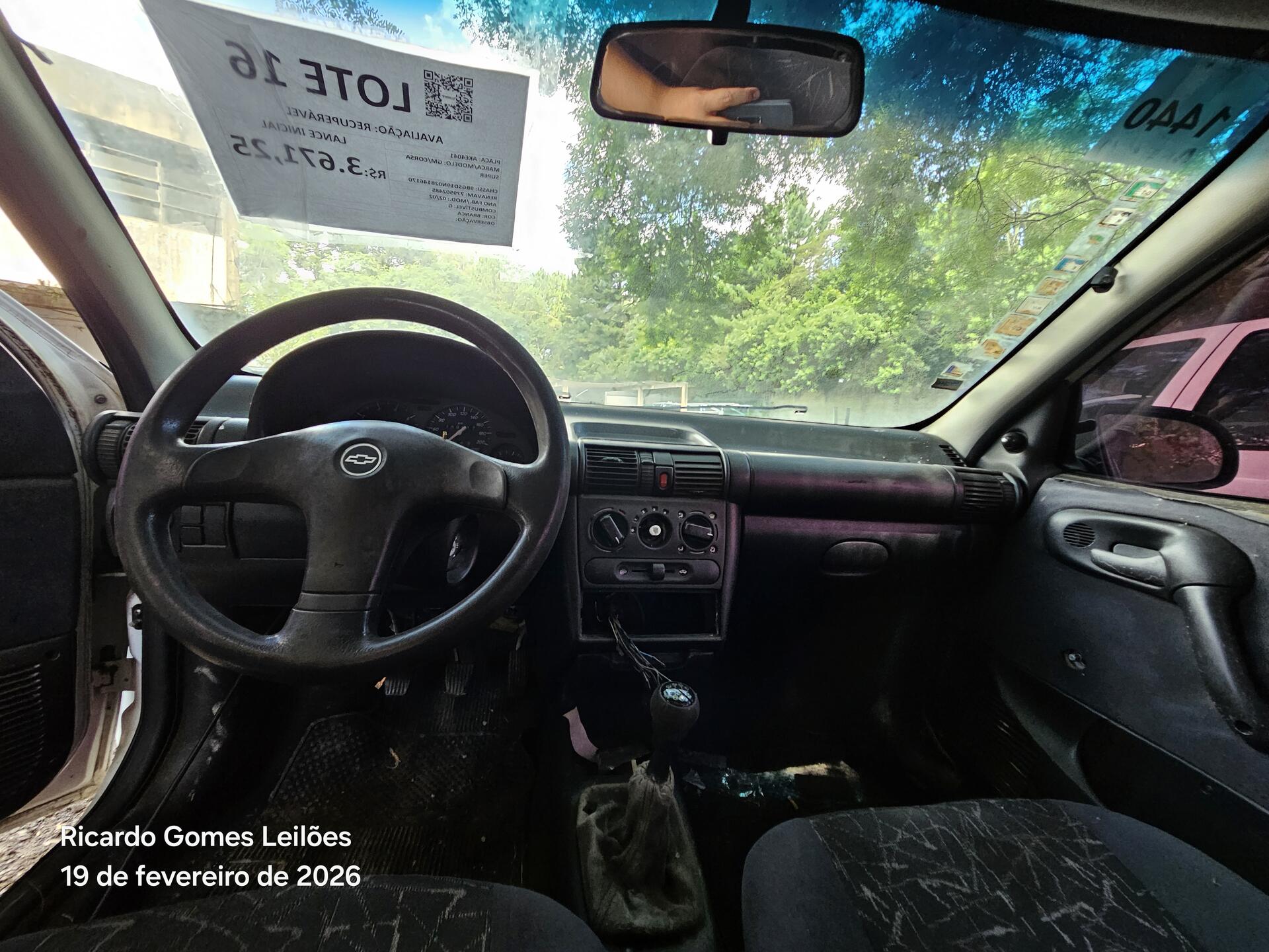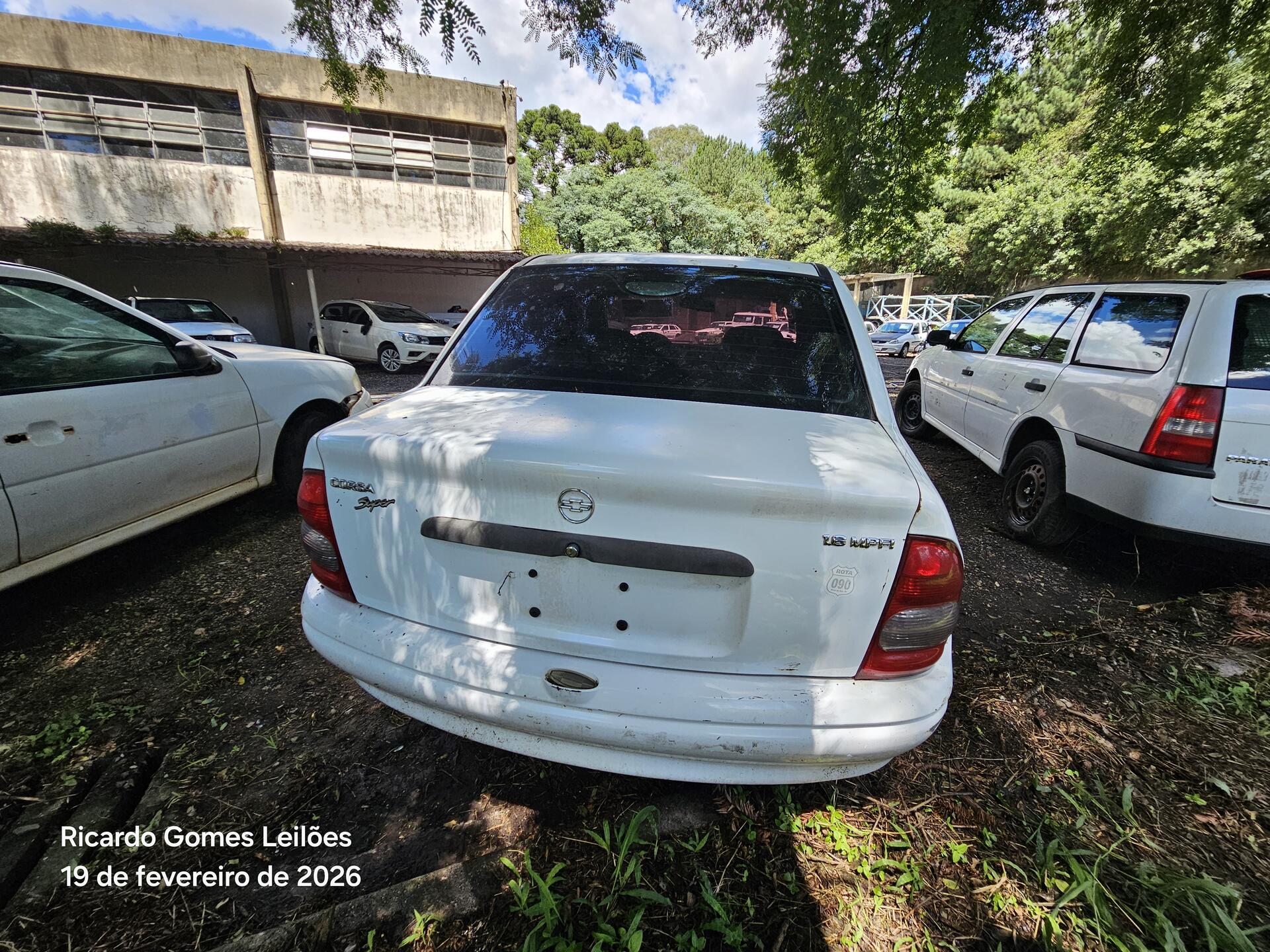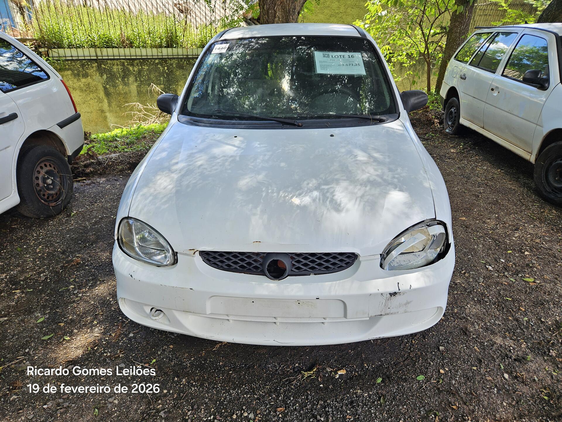Lote 016 - Recuperável - AUTOMÓVEL - GM/CORSA SUPER - PLACA:AKE4041 – CHASSI 9BGSD19N02B146170 – ANO 02/02 – COMBUSTÍVEL G – COR BRANCA – PROPRIETARIO SEAP – RENAVAM 779502485