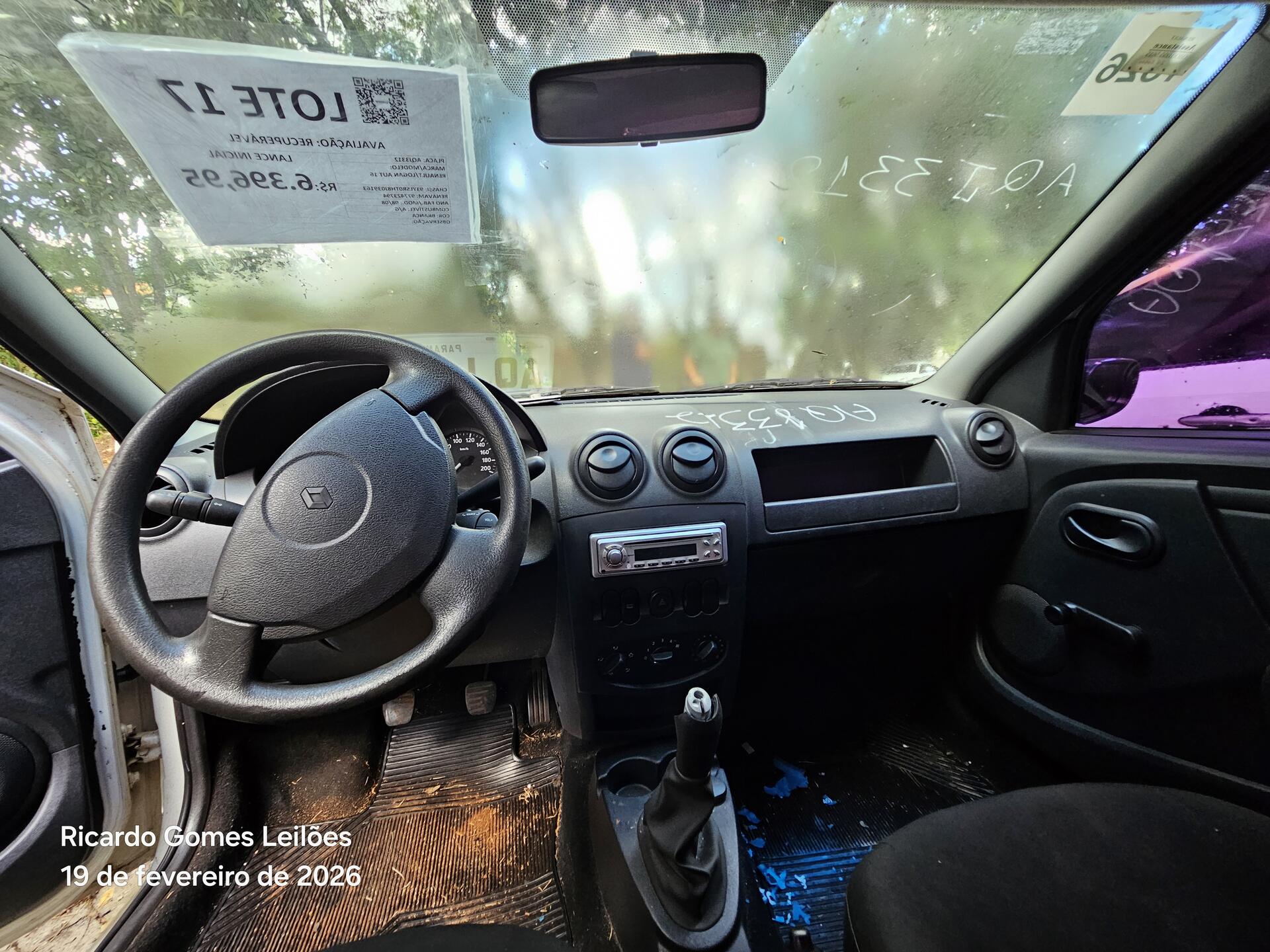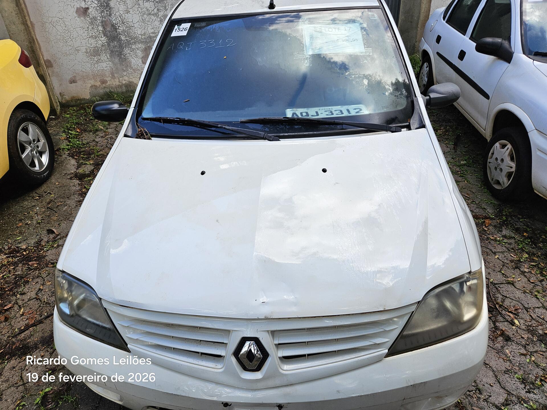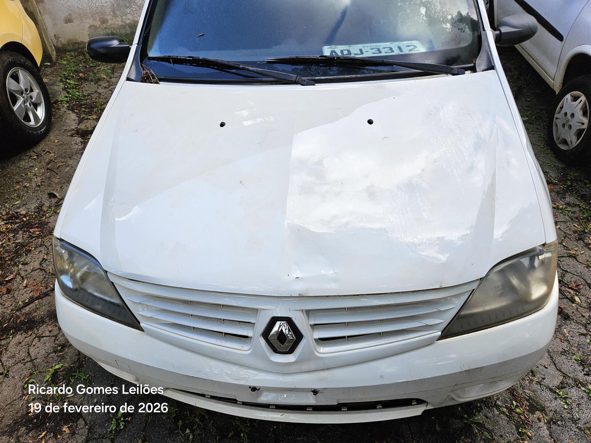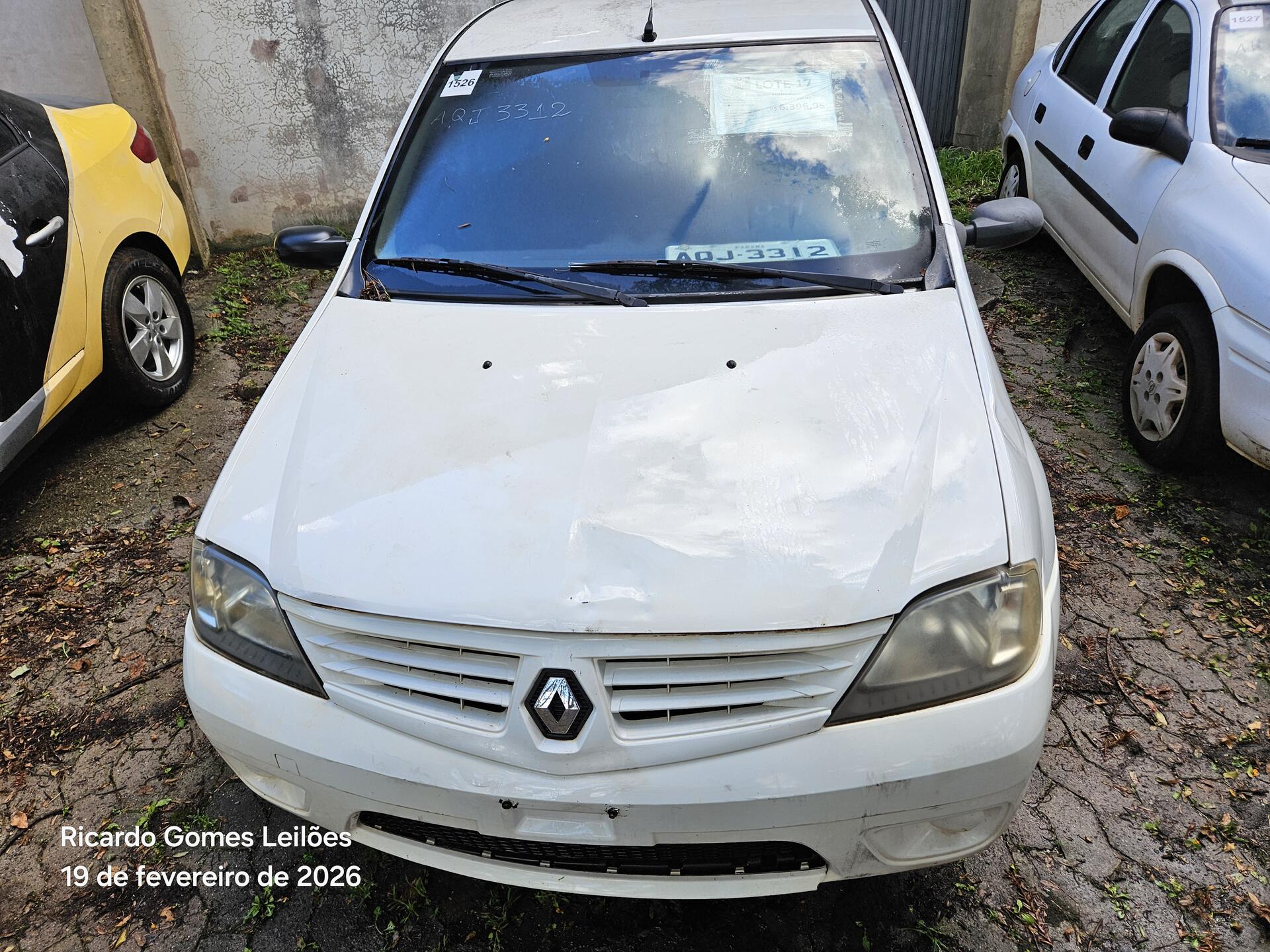 Lote 017 - Recuperável - AUTOMÓVEL - RENAULT/LOGAN AUT 16 - PLACA:AQJ3312 – CHASSI 93YLSR0TH8J039163 – ANO 08/08 – COMBUSTÍVEL A/G – COR BRANCA – PROPRIETARIO SEAP – RENAVAM 977423794