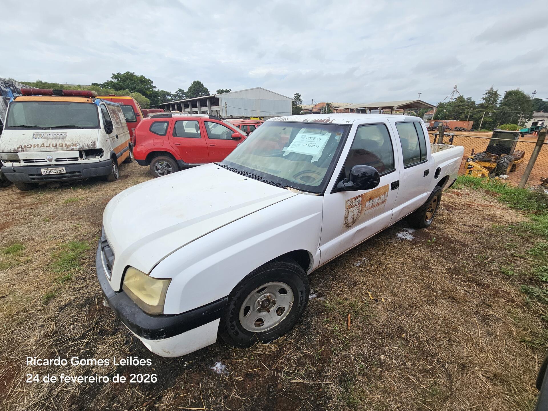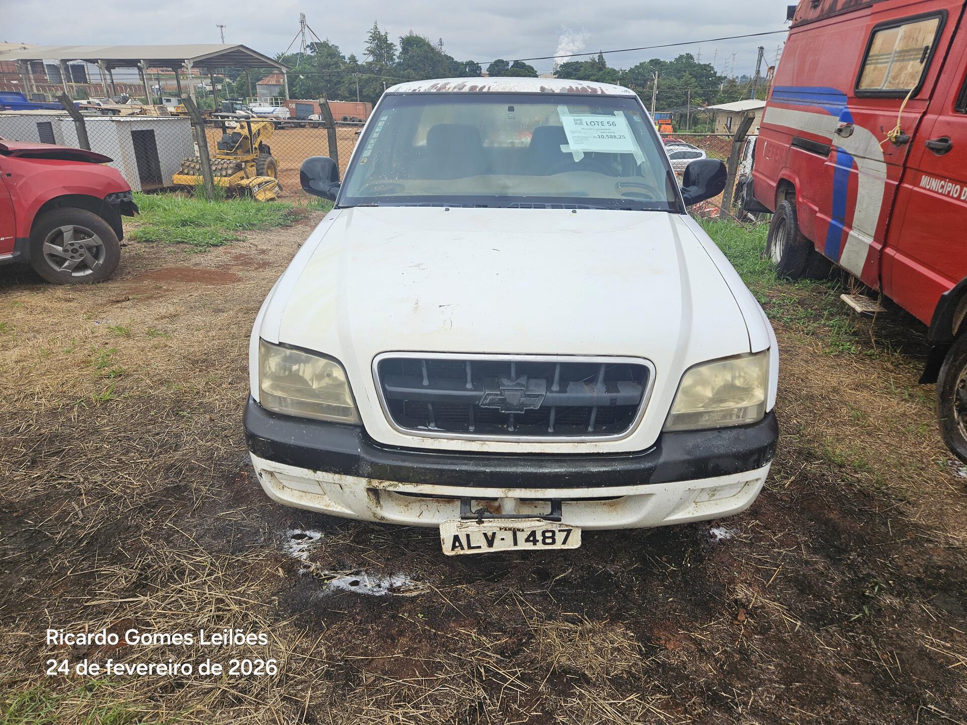 Lote 056 - Recuperável - CAMINHONETE - GM/S10 2.4 D - PLACA:ALV1487 – CHASSI 9BG138AX04C416952 – ANO 04/04 – COMBUSTÍVEL G – COR BRANCA – PROPRIETARIO SESP – RENAVAM 829617094